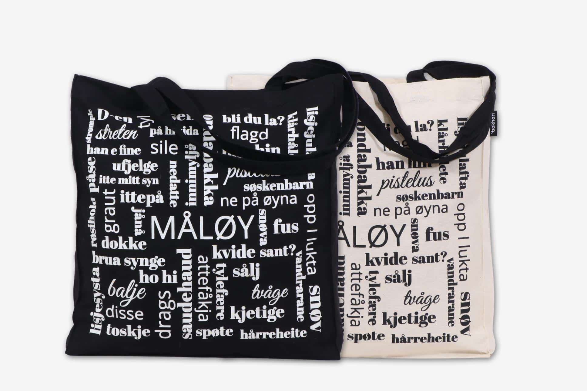 Dialektnett med særegne ord og uttrykk. Tilgjengelig i natur og svart. Også tilgjengelig som forkle.