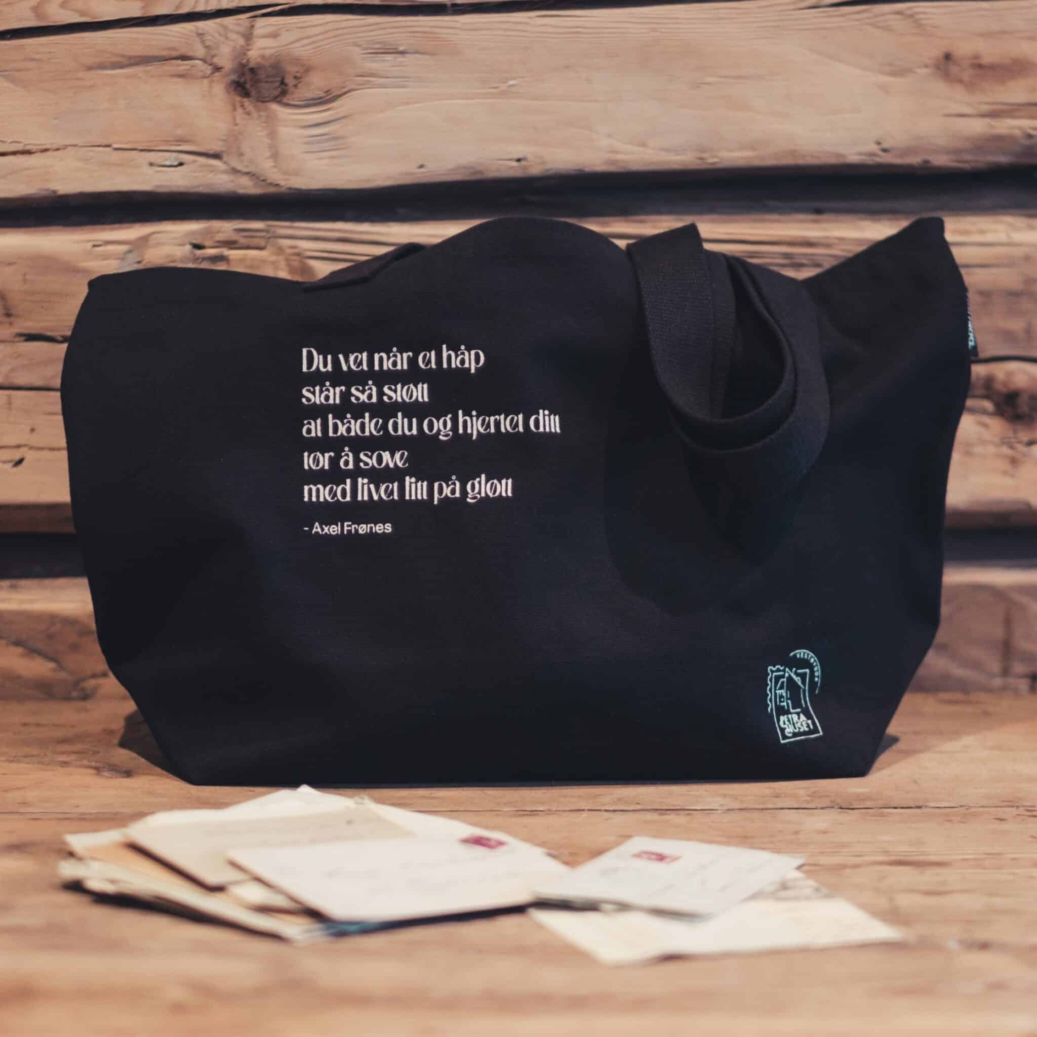 Denne vesken er en del av Petraveska-serien – en unik samling der kulturarv møter bærekraft. Tekstene på veskene er inspirert av Petras hundre år gamle brev, som bærer tidløse historier om kjærlighet, lengsel og håp.