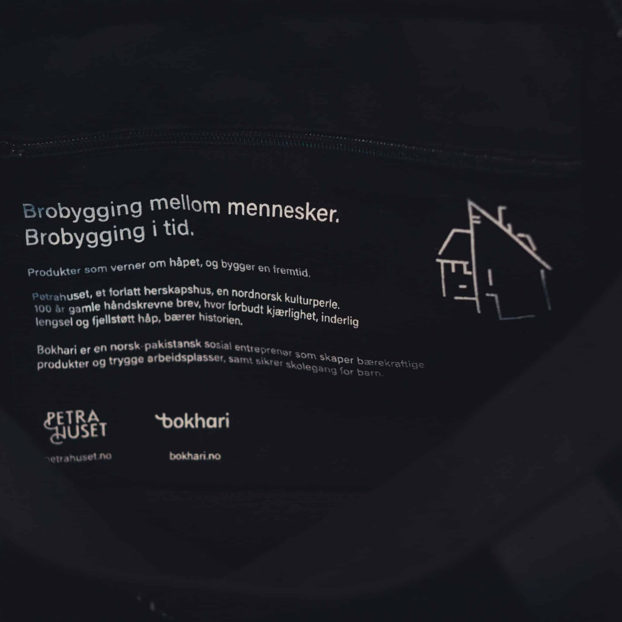 Denne vesken er en del av Petraveska-serien – en unik samling der kulturarv møter bærekraft. Tekstene på veskene er inspirert av Petras hundre år gamle brev, som bærer tidløse historier om kjærlighet, lengsel og håp.