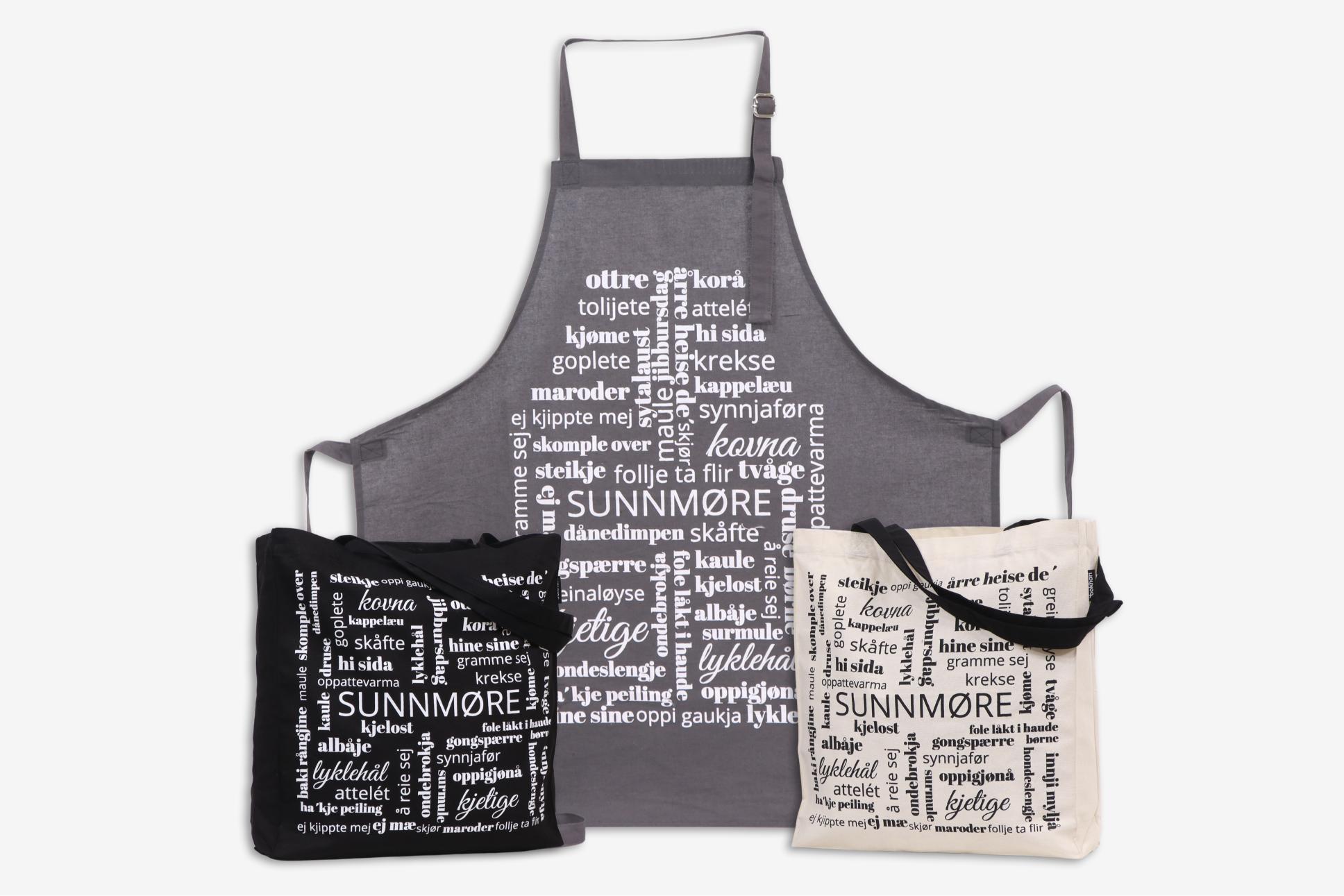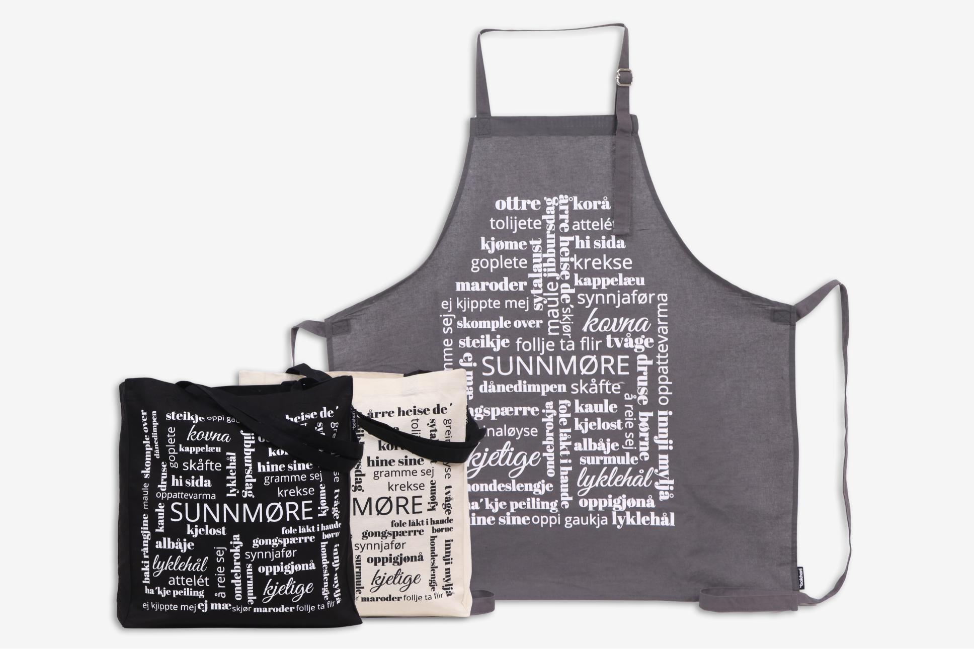 Dialektnett med særegne ord og uttrykk. Tilgjengelig i natur og svart. Også tilgjengelig som forkle.