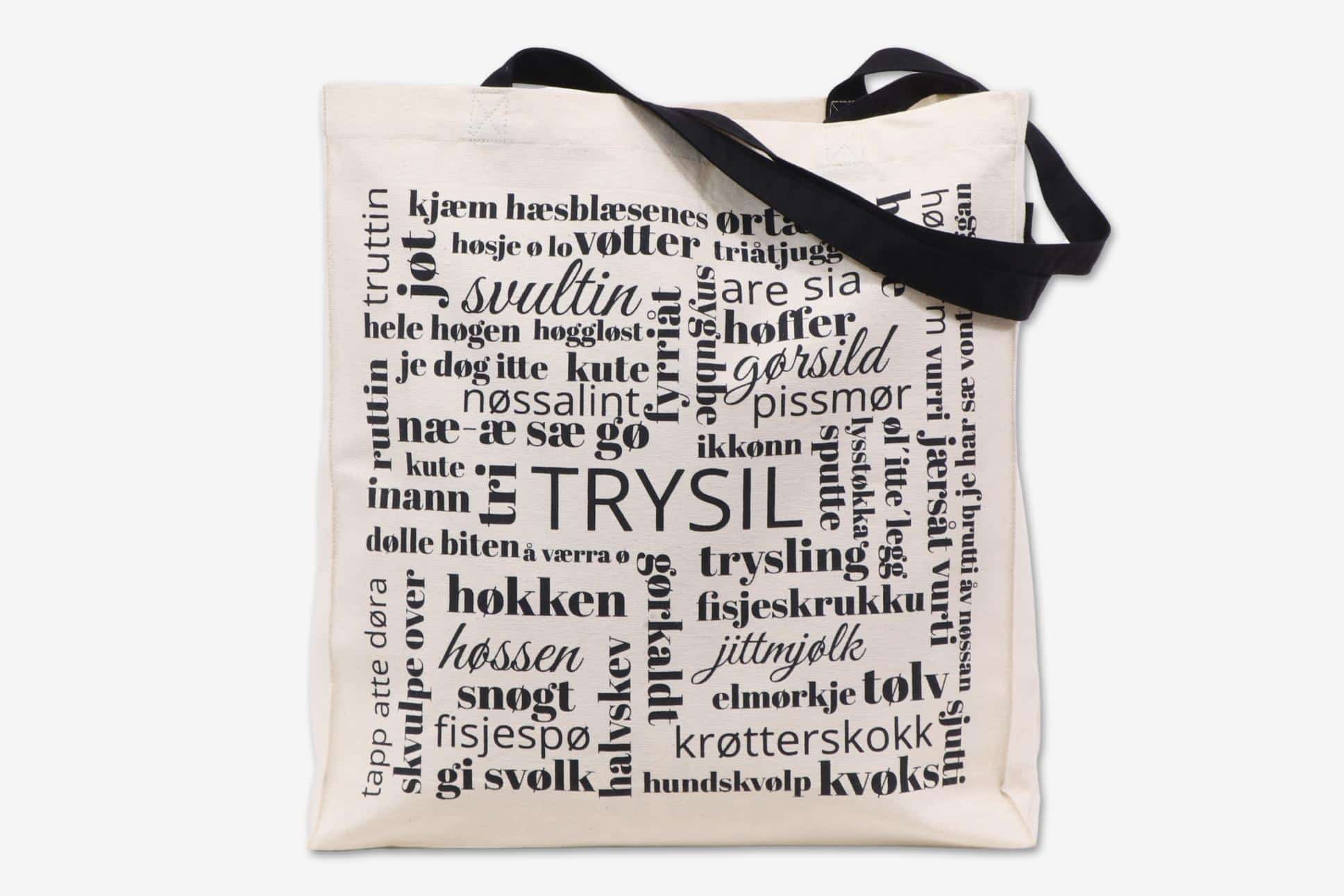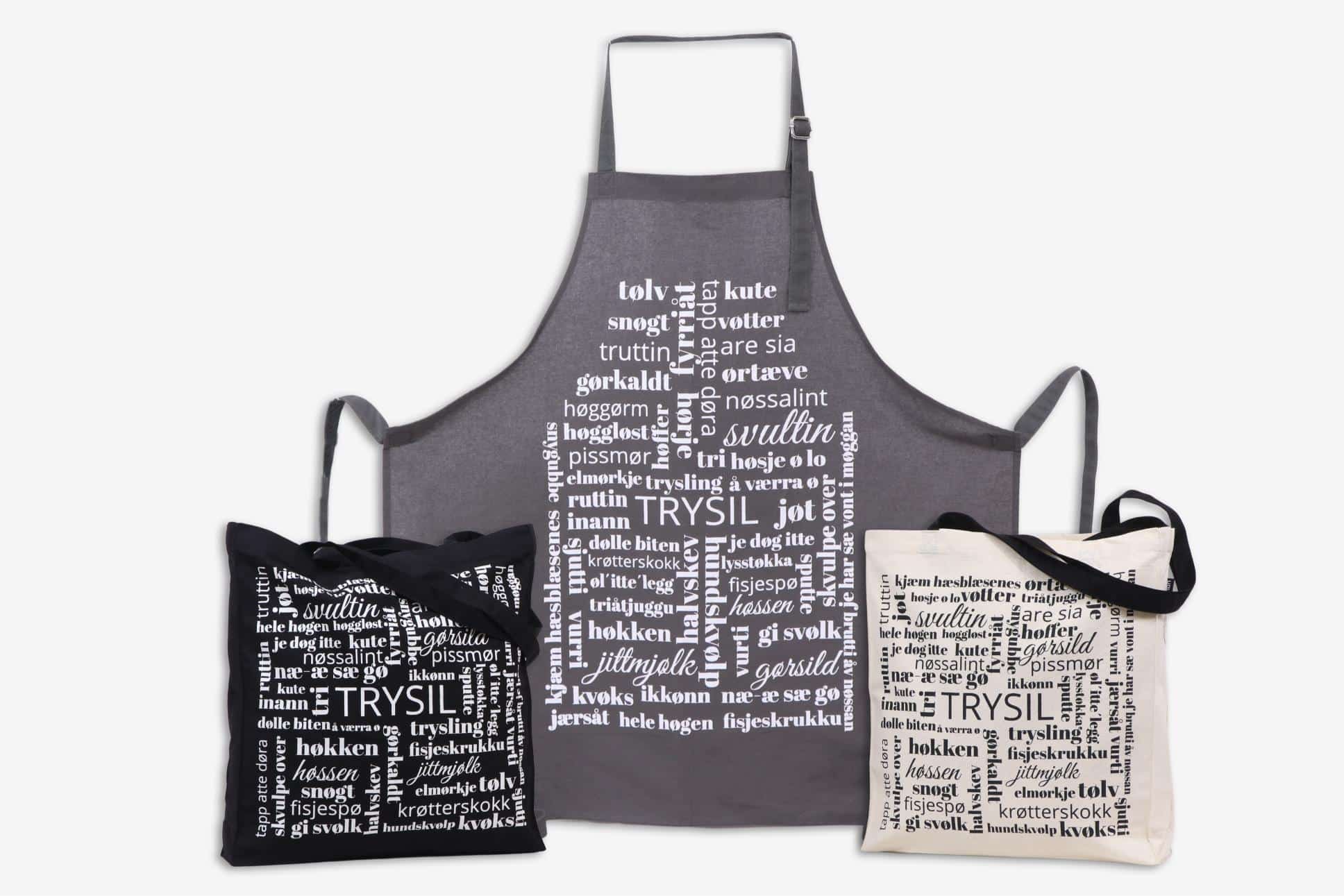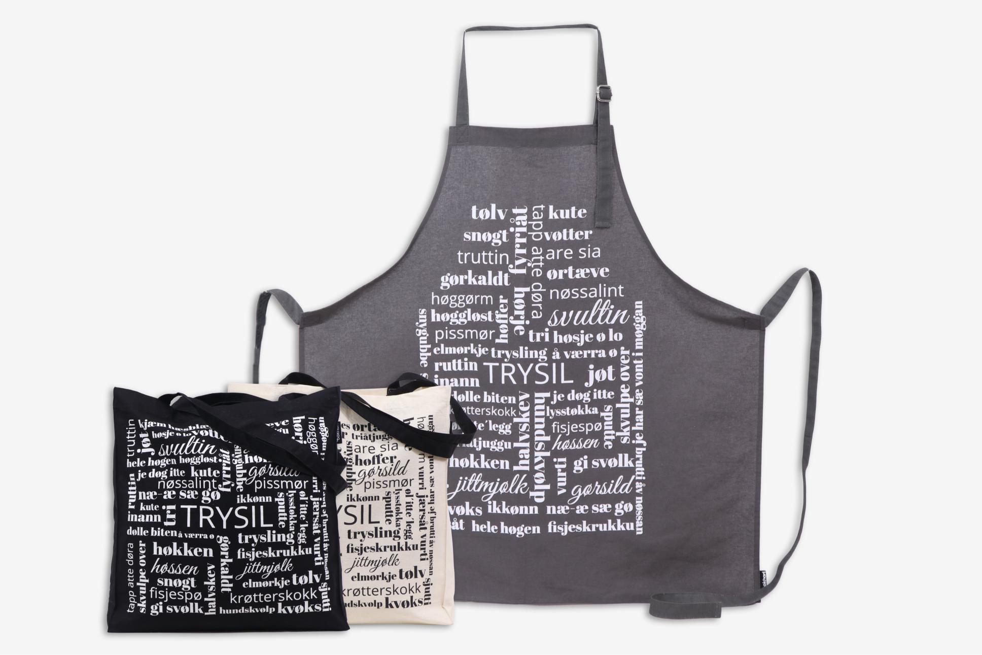 Dialektnett med særegne ord og uttrykk. Tilgjengelig i natur og svart. Også tilgjengelig som forkle.